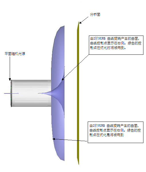 FRED 內(nèi)置混合優(yōu)化,可以同時(shí)優(yōu)化多個(gè)函數(shù),對(duì)于非均勻有理B樣條曲線(xiàn)(NURBs)可以直接優(yōu)化其控制點(diǎn)坐標(biāo)。