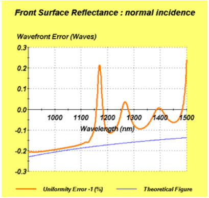 計(jì)算無鍍膜光學(xué)表面中由于誤差產(chǎn)生的波前畸變是相當(dāng)容易的。由于均勻性誤差引起的相位變化,使膜層缺乏均勻性變得復(fù)雜。