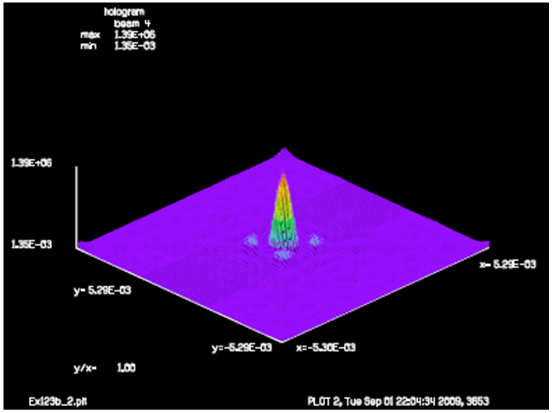 圖5.點(diǎn)光源和圖4所示復(fù)雜光束干涉形成的全息圖樣