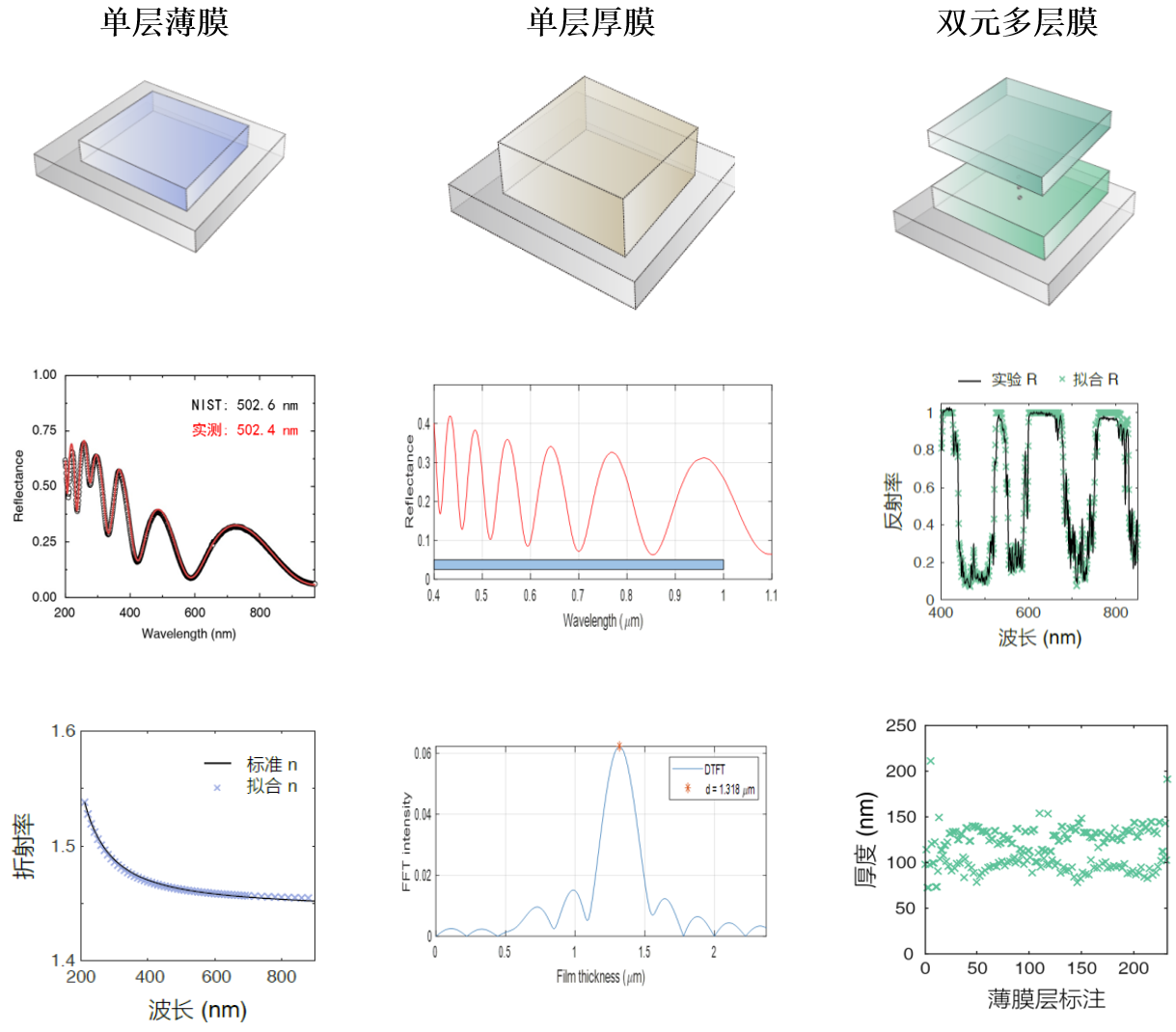 ■ 核心算法支持薄膜到厚膜、單層到多層薄膜分析;