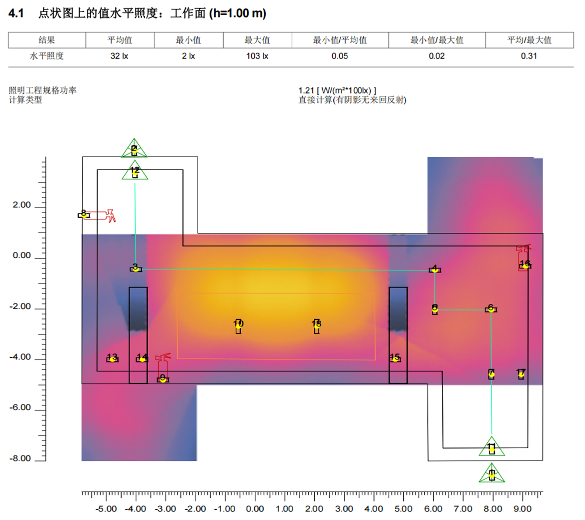 數(shù)值圖顯示區(qū)域照度為30--80lx。