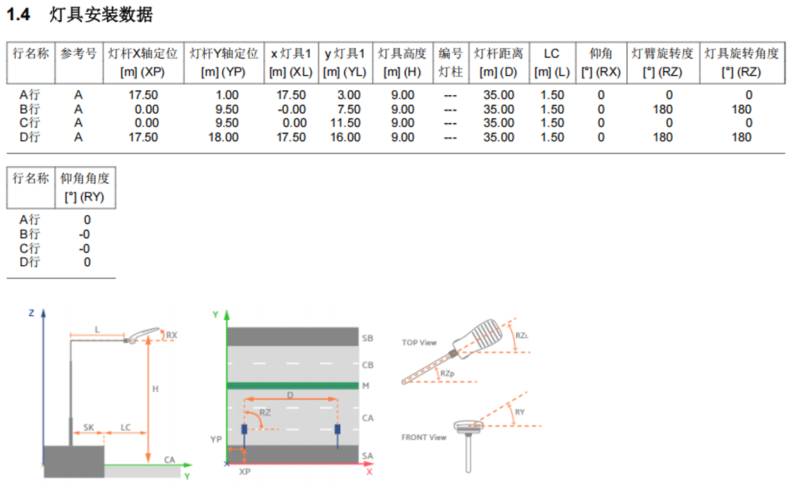 以上為本次案例所用燈具安裝數(shù)據(jù)