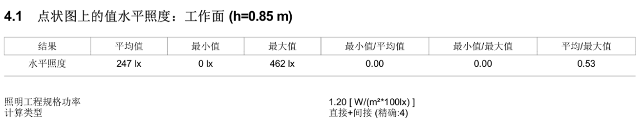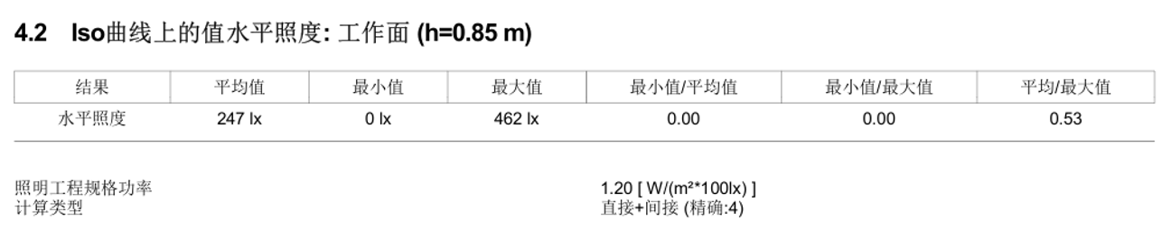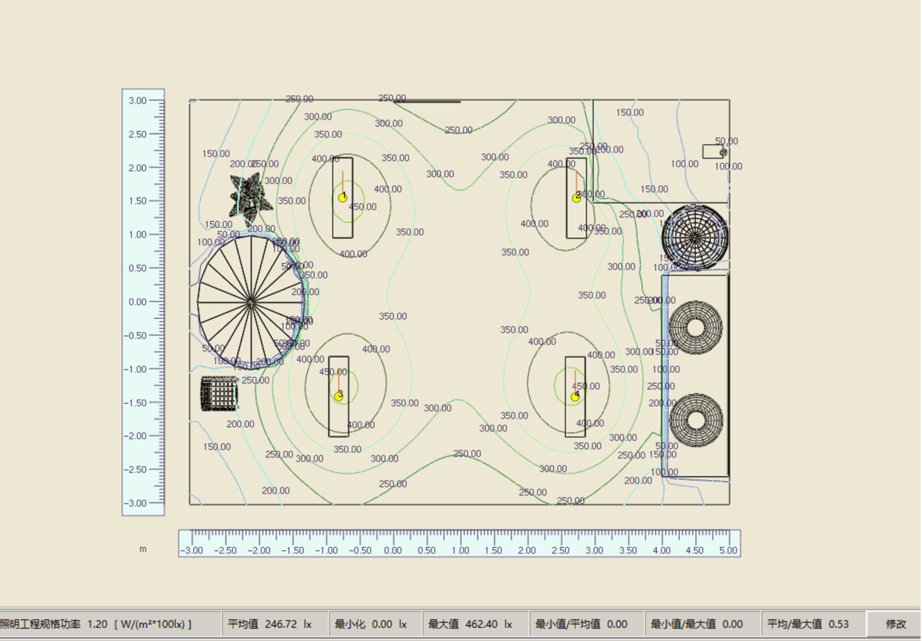 數(shù)值圖顯示區(qū)域照度為250-450lx。