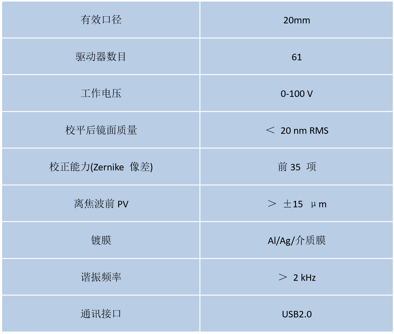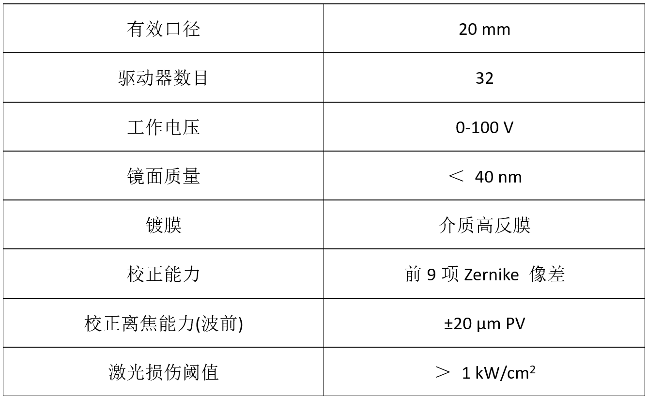 采用環(huán)形壓電驅(qū)動技術(shù)驅(qū)動鏡面變形,擠壓通光口徑內(nèi)的液體介質(zhì),實現(xiàn)對低階像差的高精度校正?芍苯忧腥牍鈱W系統(tǒng)中,主要針對領(lǐng)域:生物顯微成像、視網(wǎng)膜成像等。