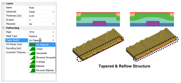 Techwiz LCD 3D支持Un-tapered, Linear, Sinusoidal, Reverse Sinusoidal, S-shape, Elliptical, Reverse Elliptical的結(jié)構(gòu)taper設(shè)定