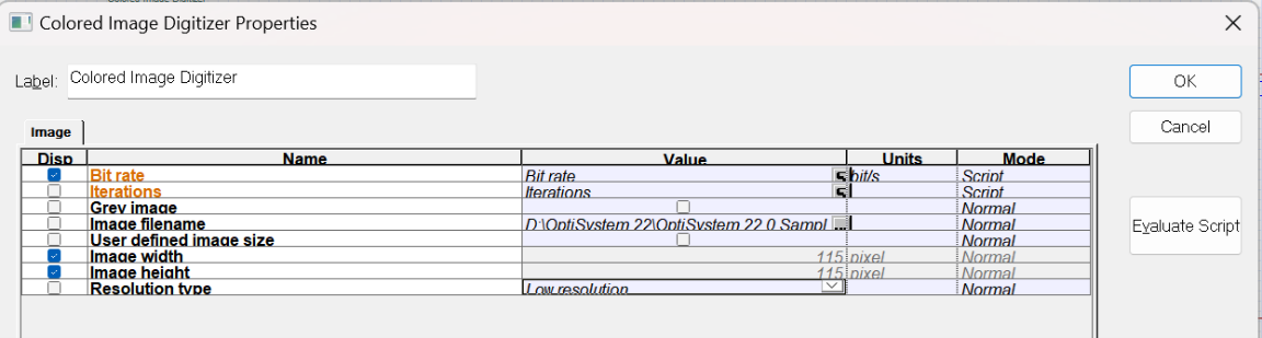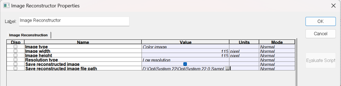 圖6.彩色圖像數(shù)字化組件和圖像重構(gòu)組件設(shè)置