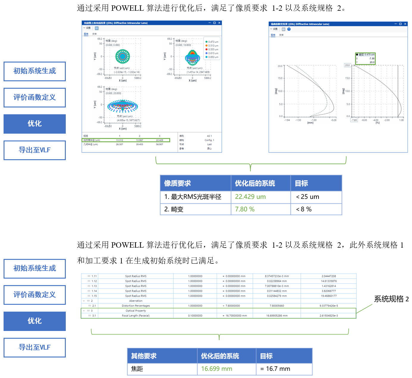 設(shè)計結(jié)果如下,像質(zhì),系統(tǒng)規(guī)格、額外系統(tǒng)限制以及加工要求均滿足預(yù)期設(shè)計目標。