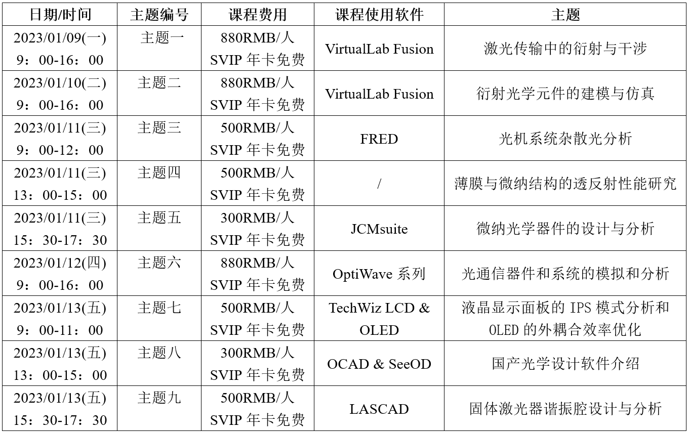歡迎大家參加熱門(mén)光學(xué)軟件之初體驗(yàn)網(wǎng)絡(luò)課程,1月13日上午,光液晶顯示面板的IPS模式分析和OLED的外耦合效率優(yōu)化(基于TechWiz軟件),1月13日下午國(guó)產(chǎn)軟件介紹,1月13日下午固體激光器諧振腔設(shè)計(jì)與分析(基于LASCAD軟件)