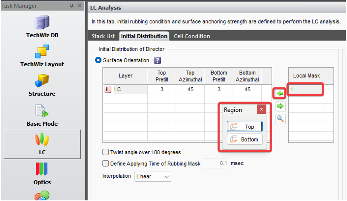 2.2在TechWiz LCD 3D軟件中將Local Mask的頂部以及底部配向角度添加進(jìn)來