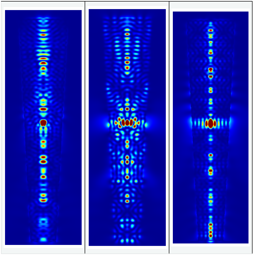下圖顯示了直柱和上述非理想柱的三個(gè)偶極子的近場和遠(yuǎn)場強(qiáng)度