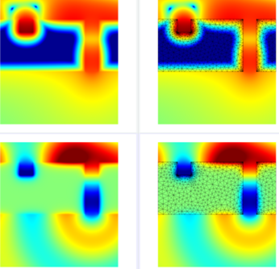 計算后場強度,有有限元網格部分(右)和沒有限元網格部分(左)(頂行:  圖 ,底行:   圖 ,偽色標)。